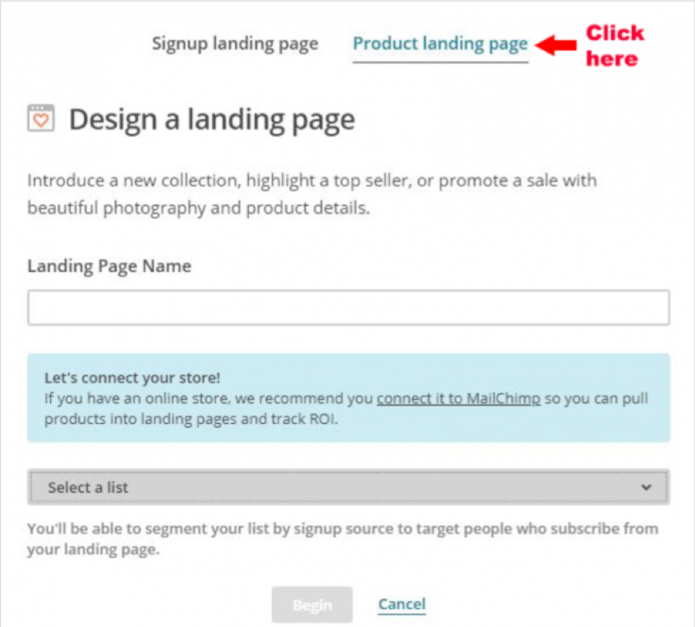 Bir ürünü satmadan veya üretmeden önce satabileceğinizi test etmek isterseniz. MailChimp ile ücretsiz bir açılış sayfası oluşturabilirsiniz.